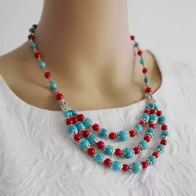 Bohemia National style long version necklace multi-layer wild with jewelry blue color stone choker autumn and winter XL178