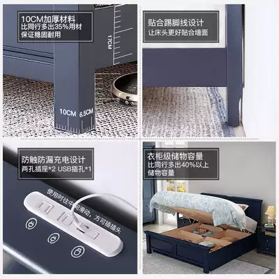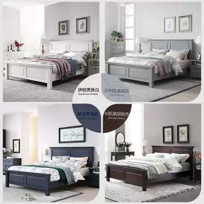 American solid wood bed Oak modern simple dark 1 8m bed Male children's blue full solid wood double bed