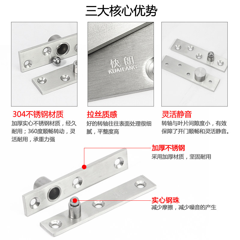 Fast Lang stainless steel 360-degree rotating shaft wooden door upper and lower hinges positioning door shaft heaven and earth shaft rotating shaft hidden hinge