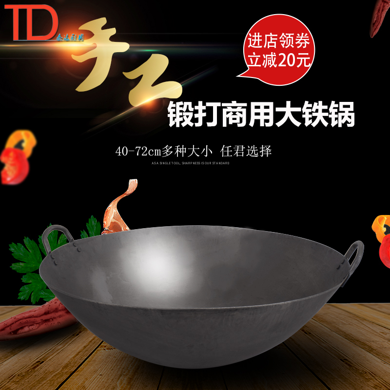 Firewood stove large iron pot double ear iron pot thickened and deepened chef frying pan iron pot large iron pot stove gas stove old-fashioned