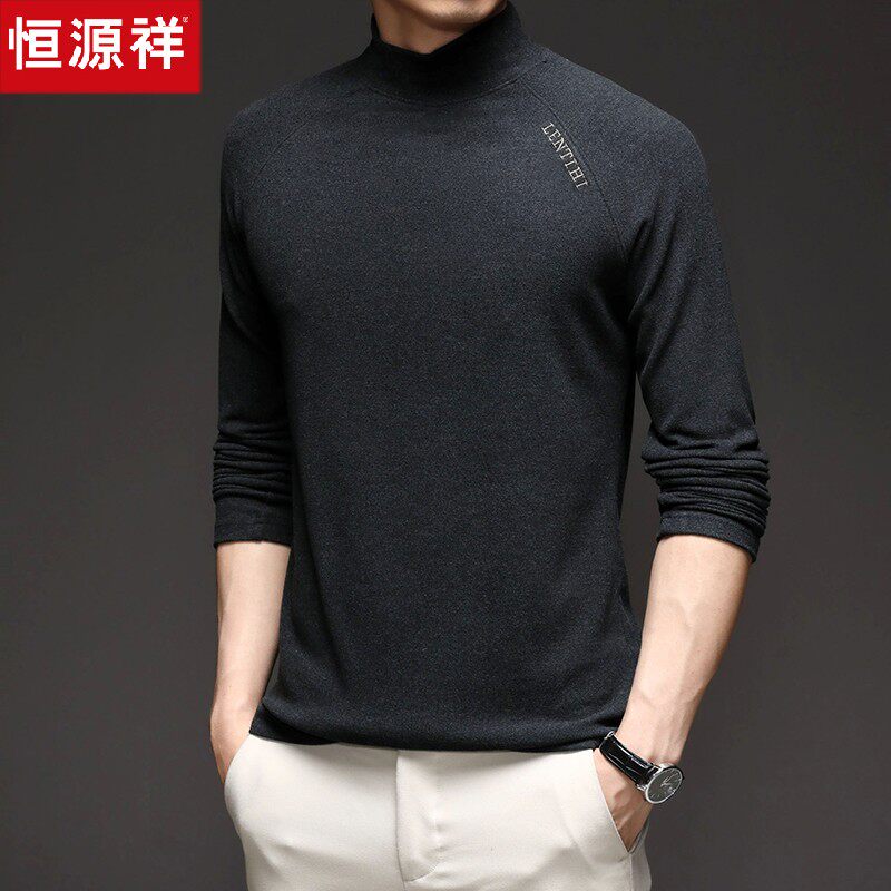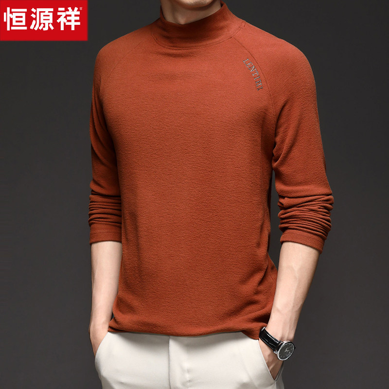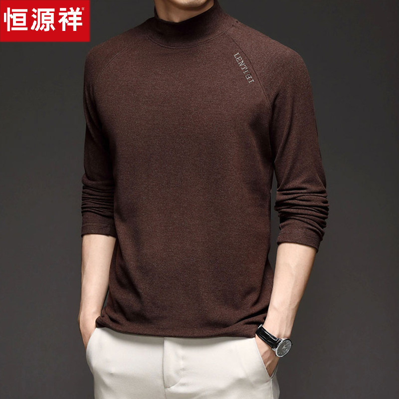Hengyuan Xiangxiang sleeve T-shirt men spring and autumn coat grinding daddy pure middle-aged half-collar double-face duvet blouse