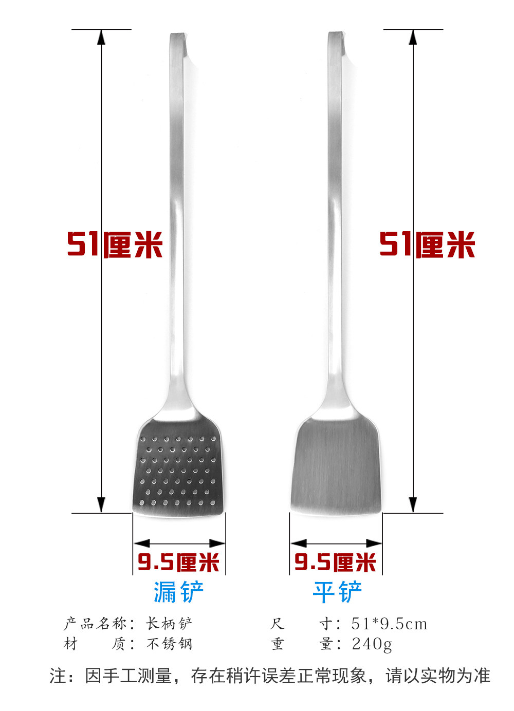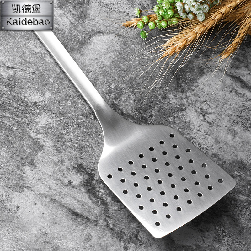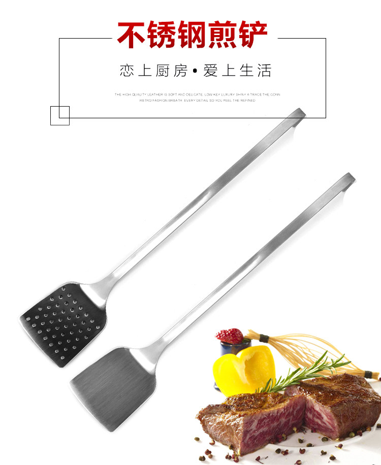Lengthened stainless steel frying turnoff with long handle leakage shovel fish steak pork chop saute sautzione with large flat shovel batter batter pancake cookware