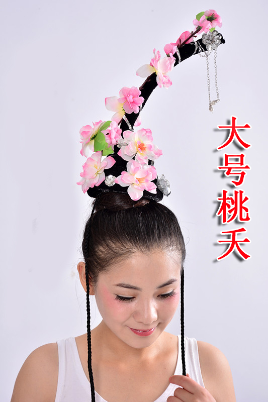 Peach Aborted Dance Headwear Girl's Seven Wonder Woman Head Accessories Classical Dance Ancient Dress Headwear Performance Wig Sleeve