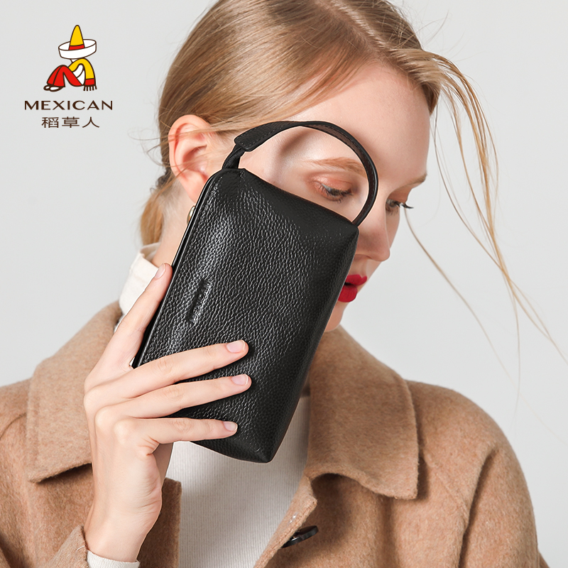 Scarecrow wallet women 2021 new fashion casual coin purse cosmetic bag genuine leather mom bag hand-in-hand grab bag