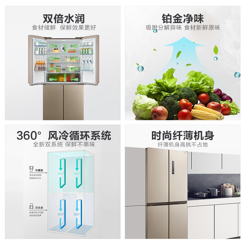 PERFECT HOME CROSS FOR DOOR OPEN FOUR DOORS REFRIGERATOR AIR-COOLED NO FROST ENERGY SAVING VARIABLE FREQUENCY DOUBLE DOOR REFRIGERATOR 468 LITRES