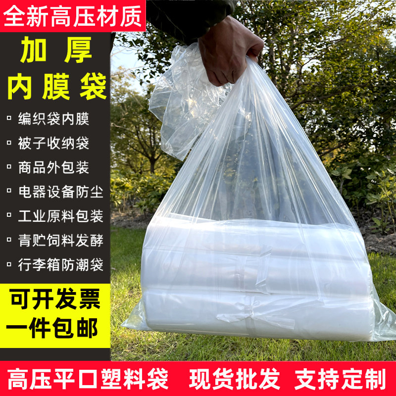 Thickened large high pressure pe inner film bag 60*90cm flat mouth transparent plastic bag food bag powder bag