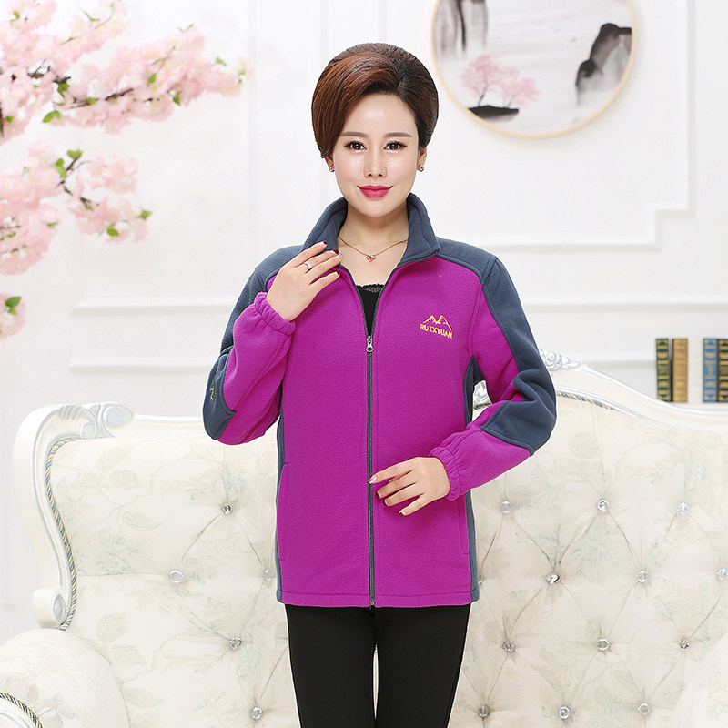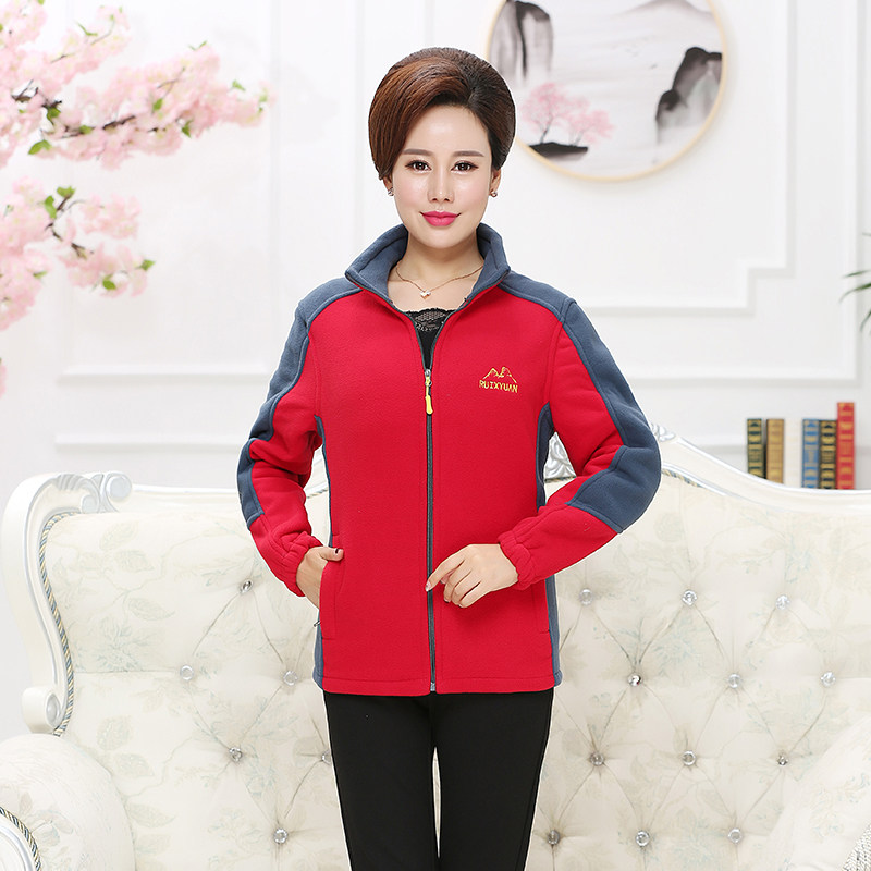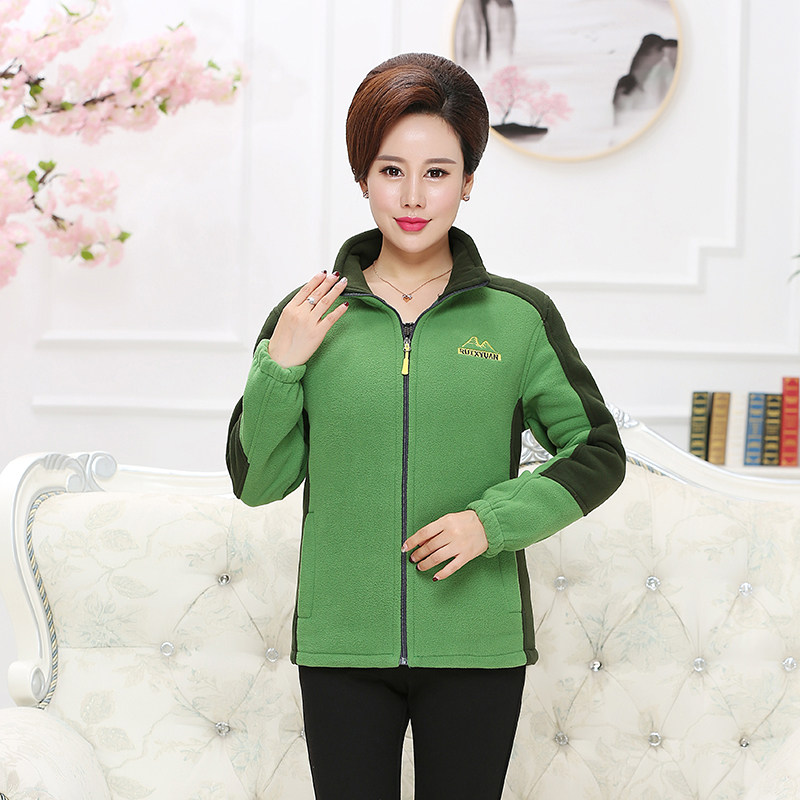 Middle-aged and elderly autumn and winter thickened warm jacket fleece jacket women's top double-sided fleece mother wear polar fleece cardigan thick cotton T