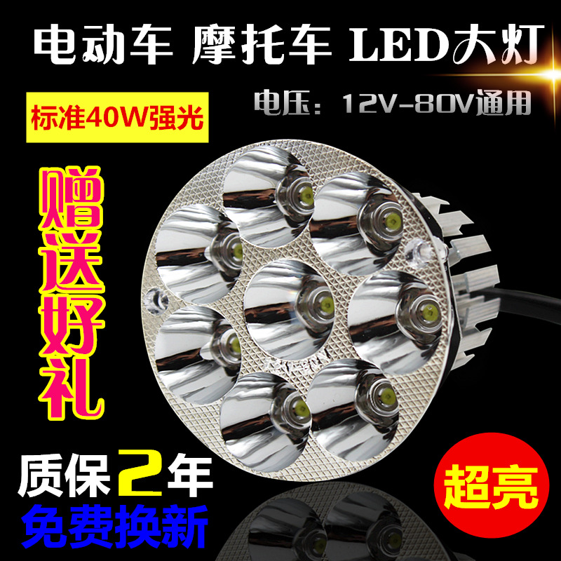 Electric vehicle locomotive LED super-bright front headlights new 6 Pearl round square near light built-in