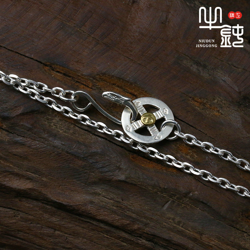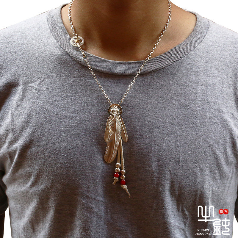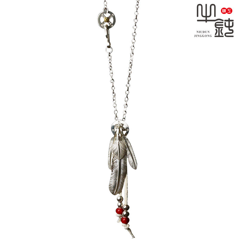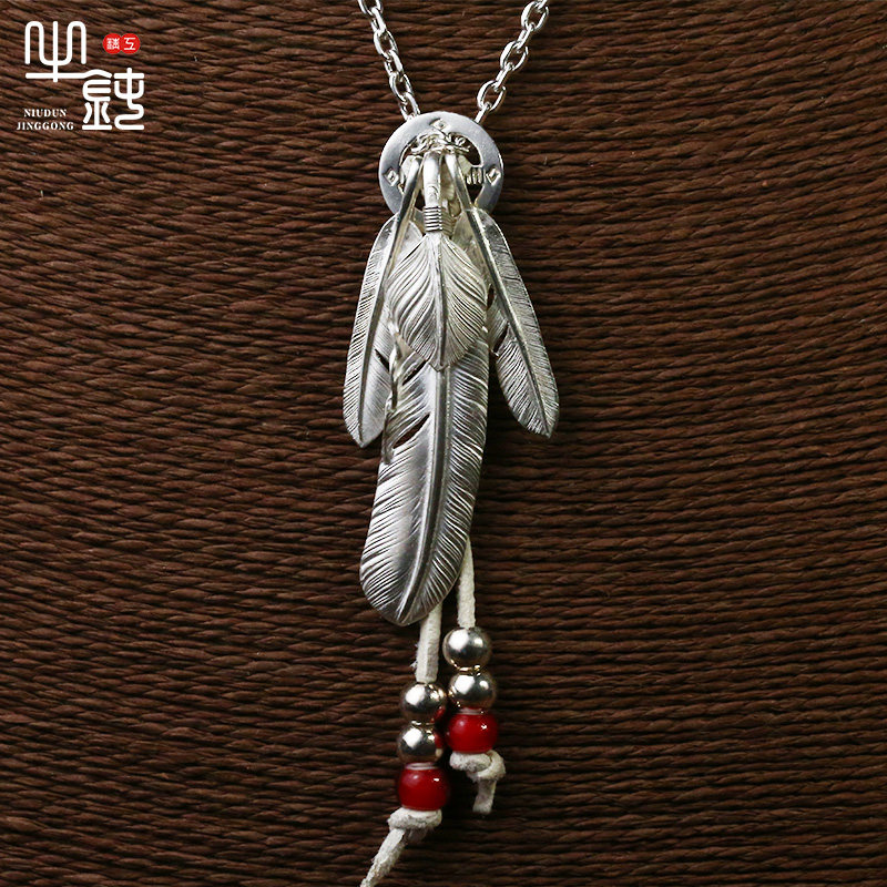 Bull blunt precision Takaqiao silver feather chain small feather pendant hand - inscribed 925 pure silver ornament couple