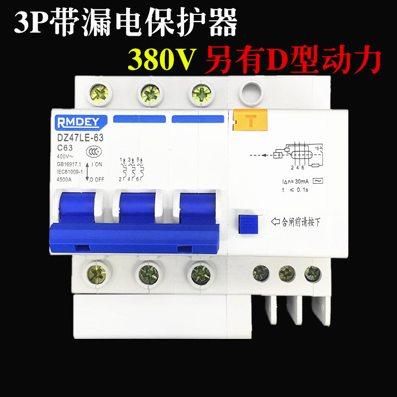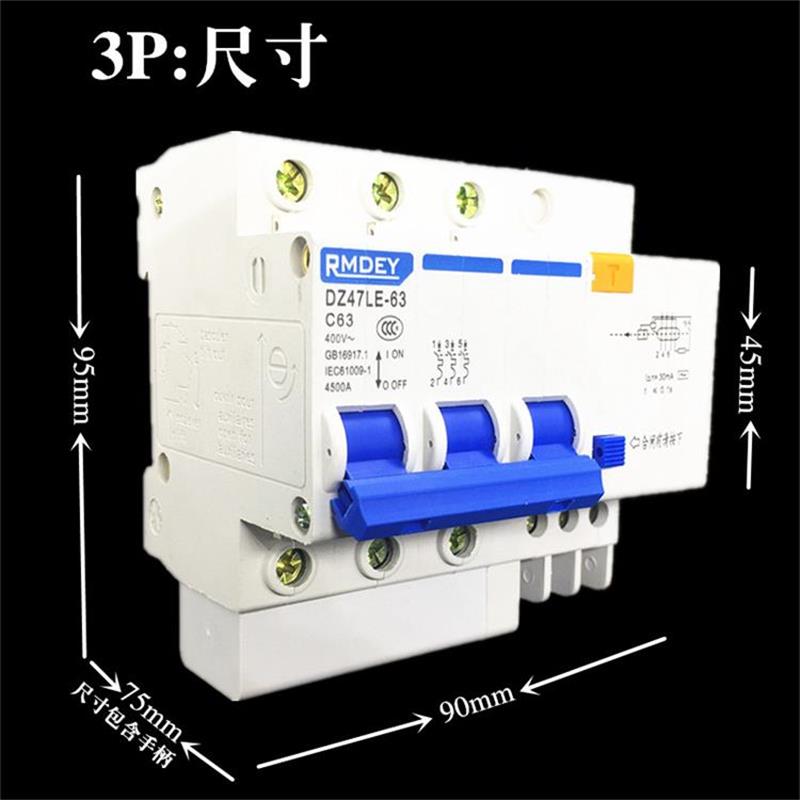 Shanghai people leakage protection switch 3P63A DZ47LE three-phase three-wire 32A leakage protector 380V circuit breaker