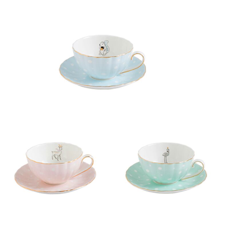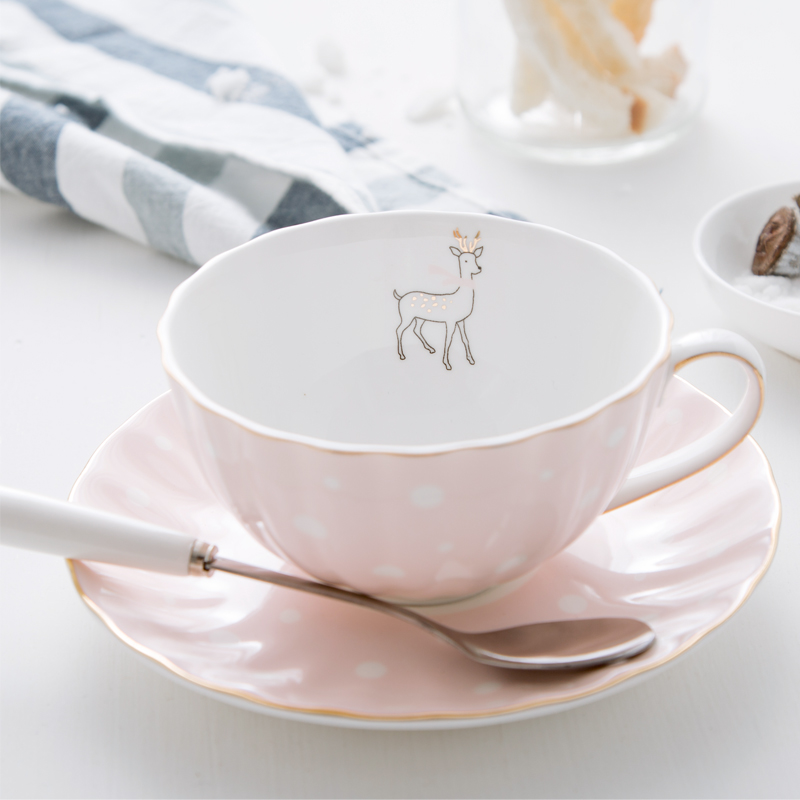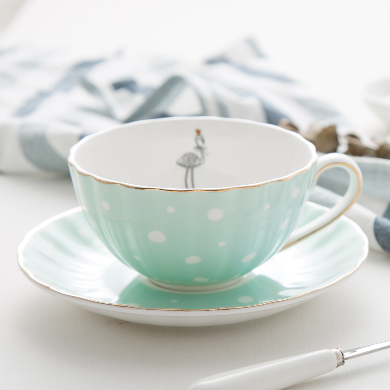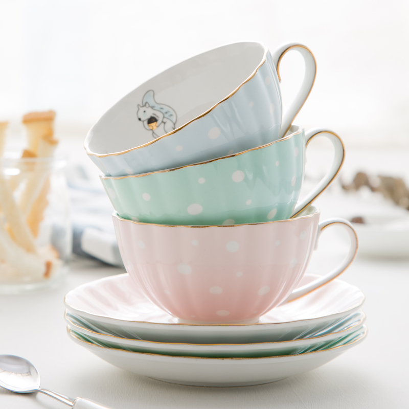 Nordic wave point English coffee cup Light Luxury European Flower Tea Cup Gold cup Dish set Exquisite pink Afternoon tea cup
