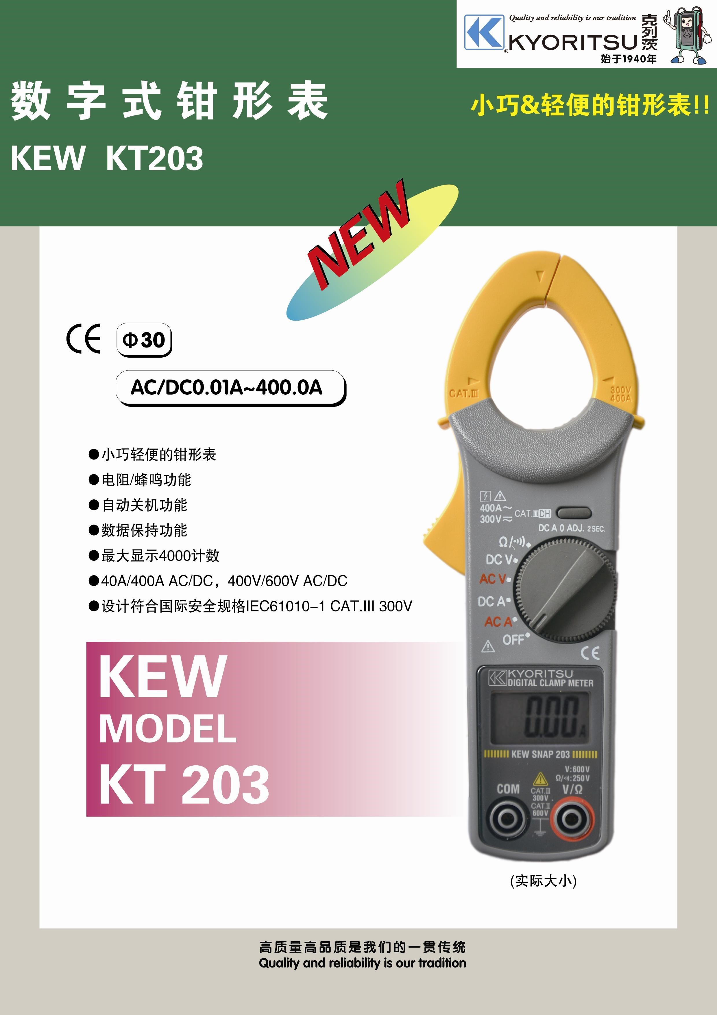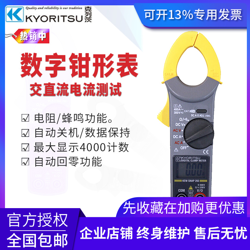 Japan's KYORITSU Kletz Gongli KT203 clamp-type current and voltmeter high-precision 400A clamp-type hook meter