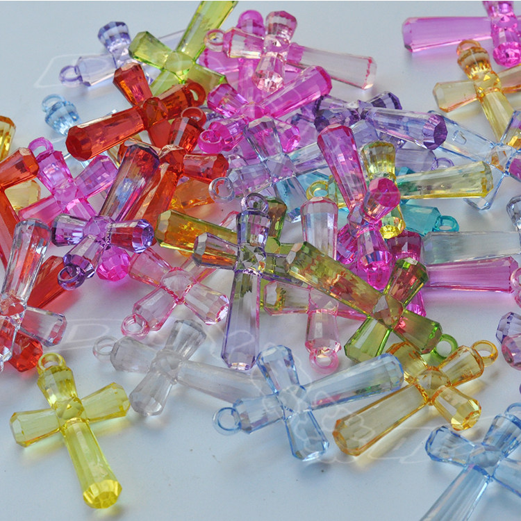 DIY String Beads Ornament Accessories Children Transparent Colorful Acrylic Plastic Cross Pendant Pendant Over Home Gem-Taobao