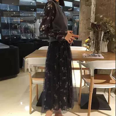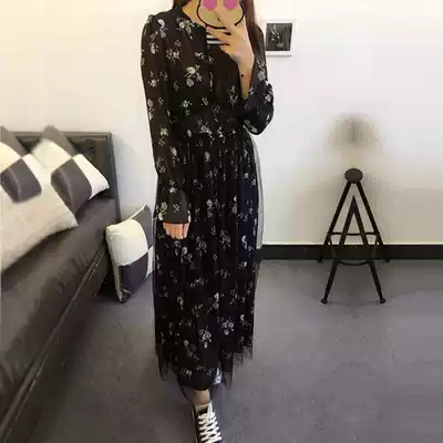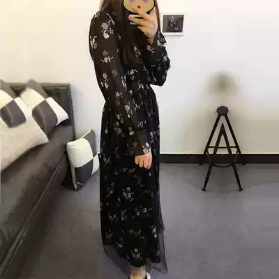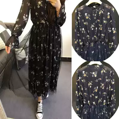 French floral dress autumn long version knee temperament 2020 Spring Korean retro student long sleeve chiffon skirt