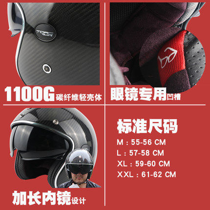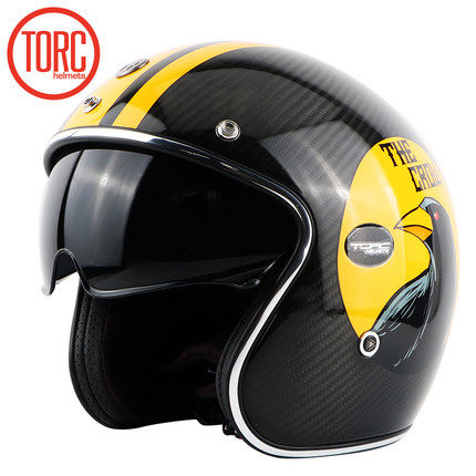 New TORC carbon fiber retro Harley motorcycle helmet men and women UV big trade half helmet flying helmet