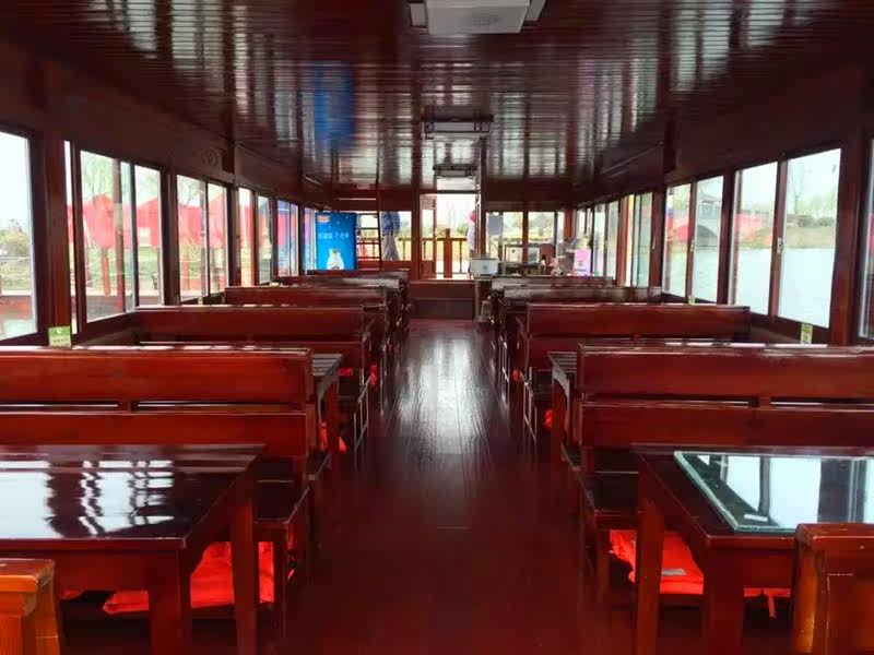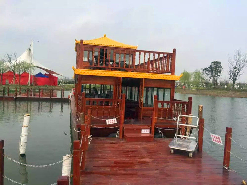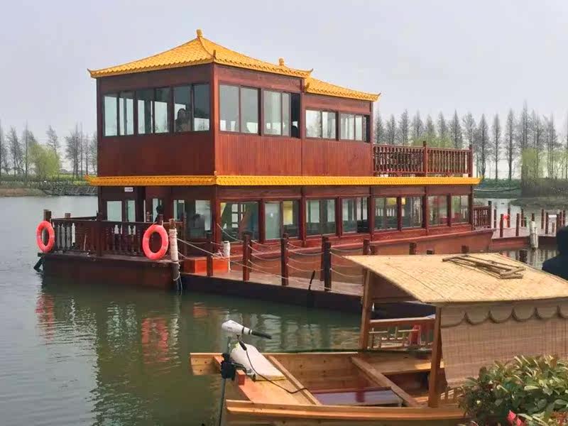 Large water catering boat Double open air balcony painting Dining Boat Scenic Area Electric Chinese Imitation Antique Leisure Sightseeing Tourist Boat