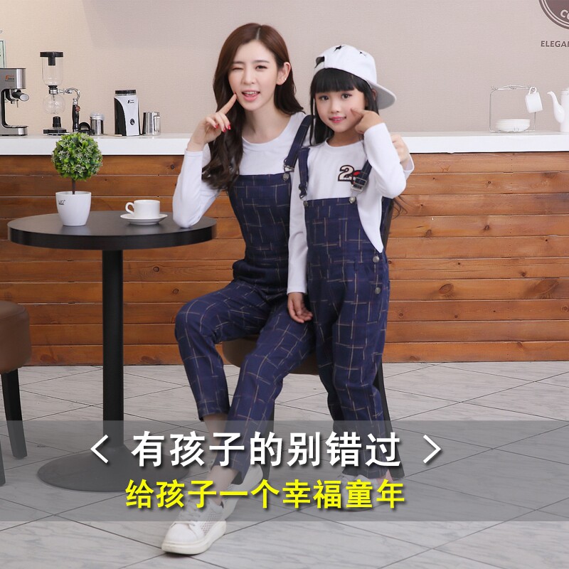 Parent-child wear 2022 new spring and autumn clothes trendy mother and daughter mother and child long-sleeved T-shirt plaid overalls two-piece winter suit