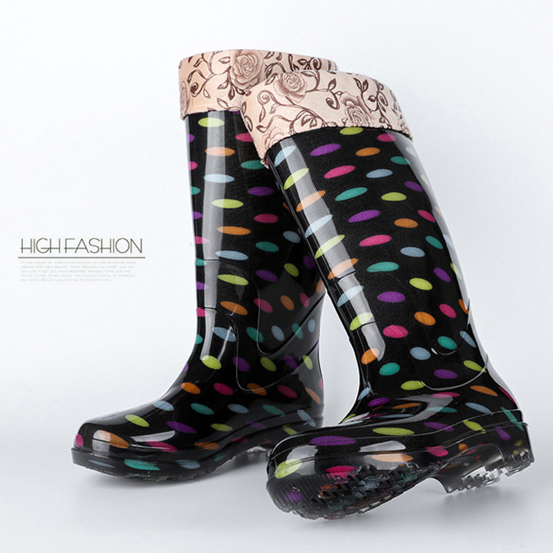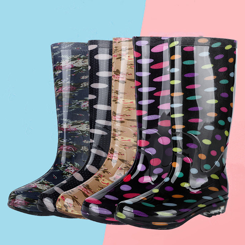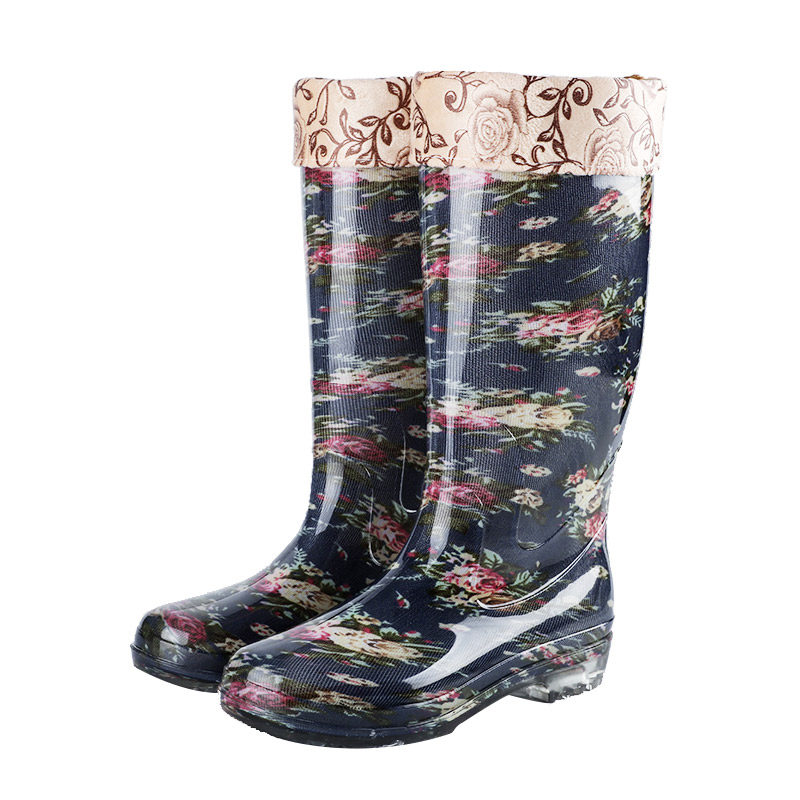 Non-slip long tube velvet cotton rain boots Rain boots waterproof shoes Water boots Rubber shoes galoshes women's adult fashion warm high tube winter