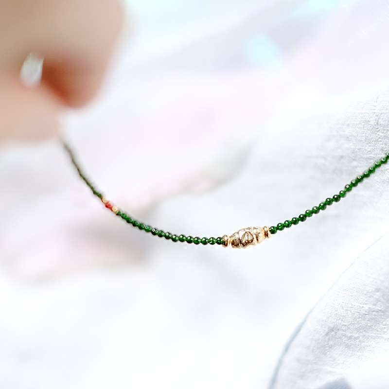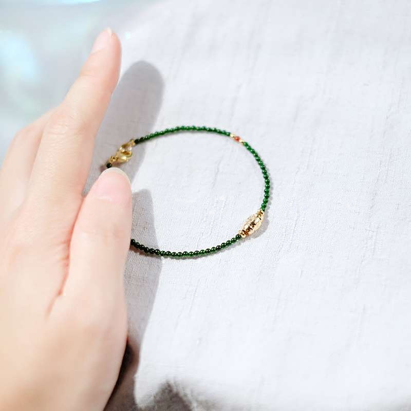 Meet your lucky) Brazilian green sand agate to match the Wangwenfu print Little gold pearl handmade female small girl
