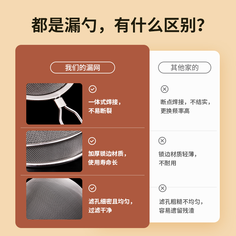 304 stainless steel oil grid septa pearl milk tea soy milk double ear mixed flour spoons filter milk tea shop Commercial