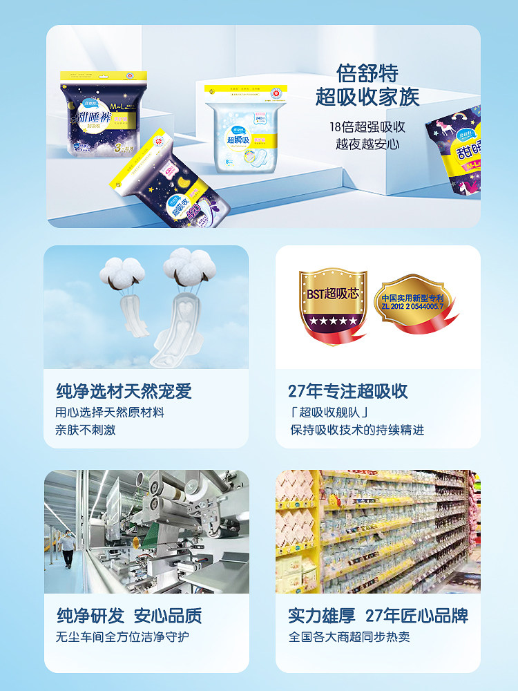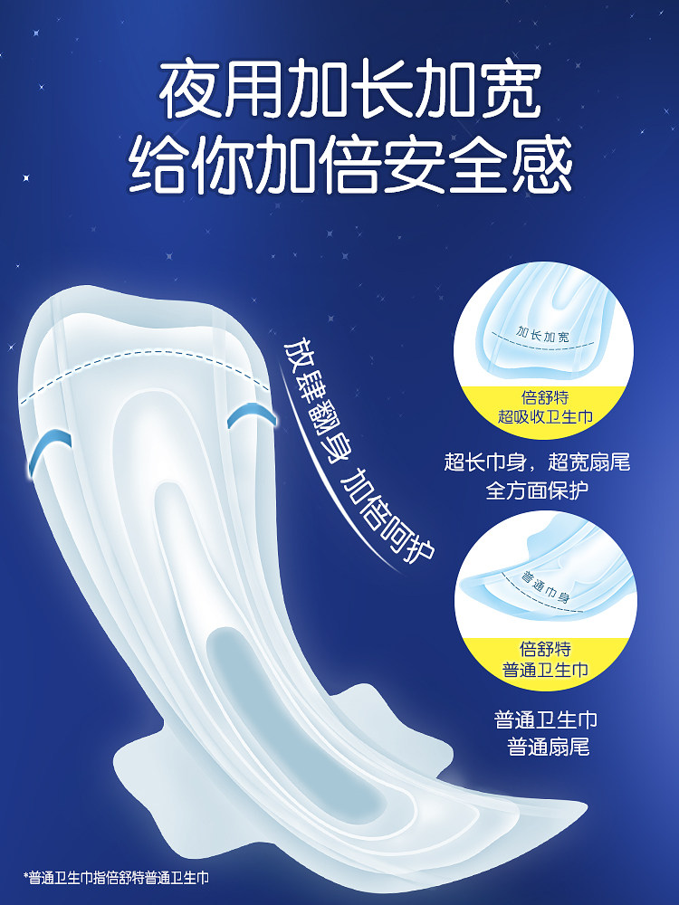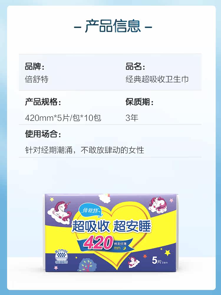 Beishute leak-proof sanitary napkin aunt 420mm ultra-long night with female combination full box 10 packs 50 pieces of cotton