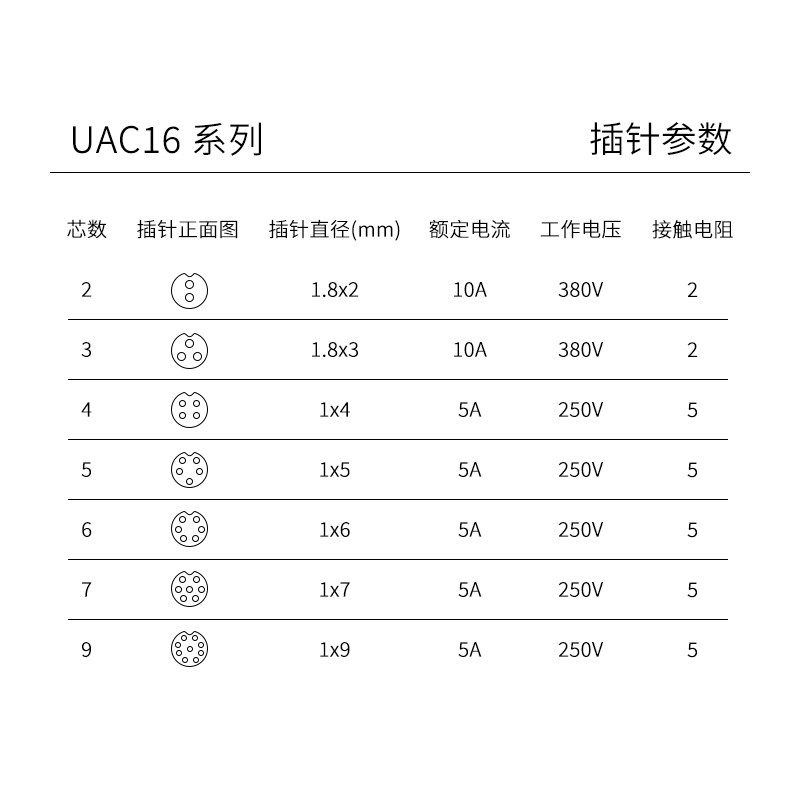 2 Core (plug socket 10A) 3 Core (plug socket 10A) 4 Core (plug socket 5A) 5 Core (plug socket 5A) 6 Core (plug