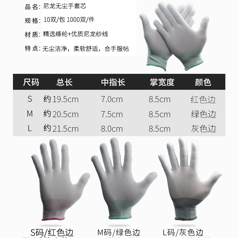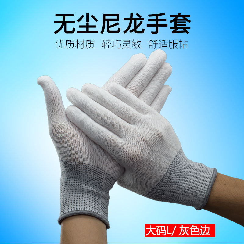Dust-free nylon core gloves 10 Double-mounted breathable high-bomb anti-slip white manual work Factory protective Lauprotect gloves