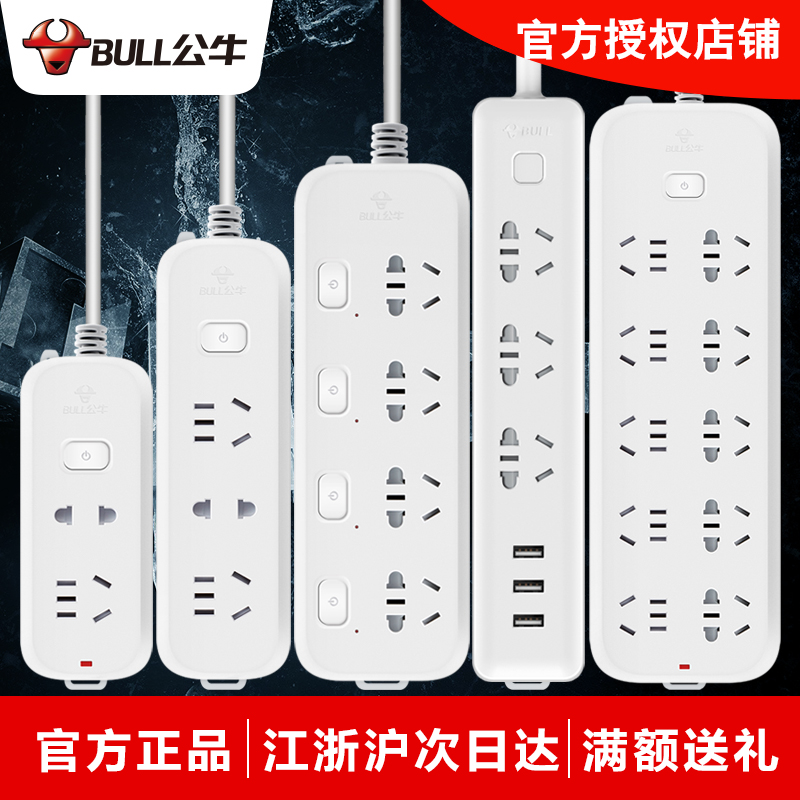 Bull Socket Inserted Platoon Dormitory Student God Instrumental Plugboard With Wire Multifunction Golden Bull Red Bull Steak Checked Insertion Extension Cord