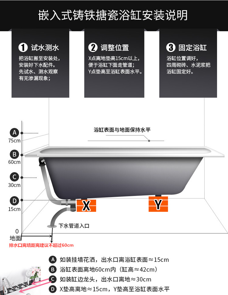 Sbrand net red small apartment built-in enamel tub thickened powder room household adult cast iron ceramic bathtub