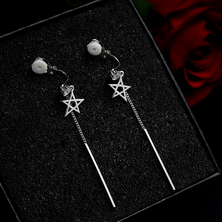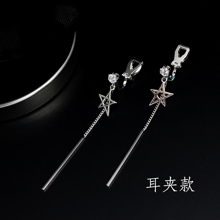 Earless ear piercing ear clip fake ear pin five-pointed star zircon earrings simple long version cd cross-dress pseudo lady's clothing big guy supplies