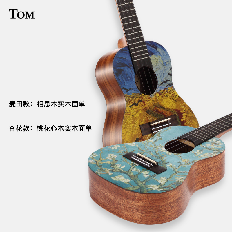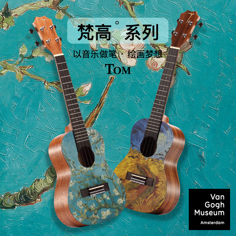 TOM's new Van Gogh series wheat field ukulele apricot flower ukulele veneer 23 26 inch veneer student