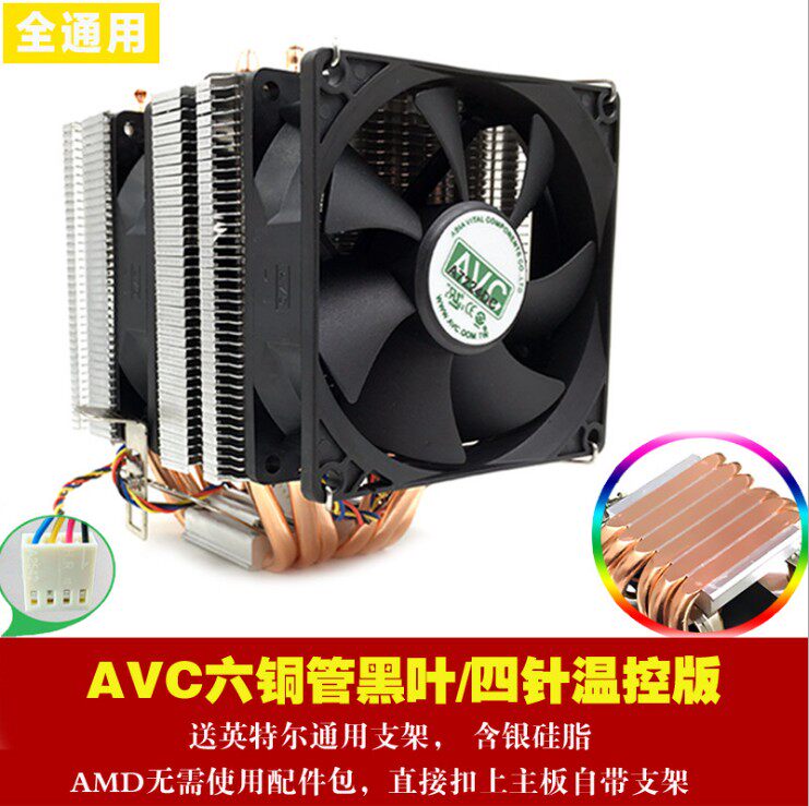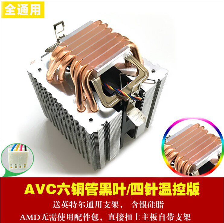 AVC pure copper 6 heat pipe CPU radiator AMD 1155 1156 desktop computer CPU fan