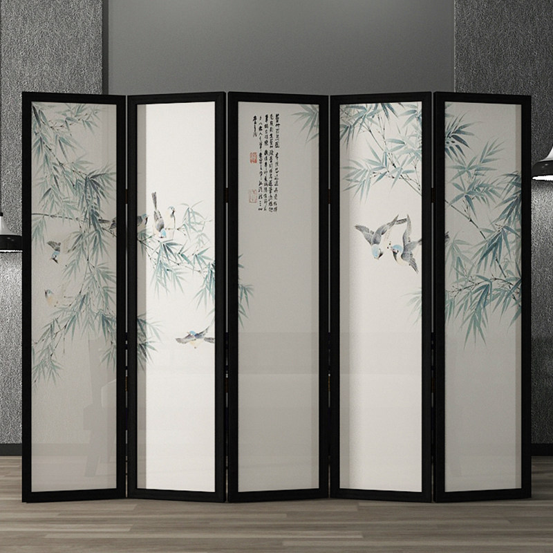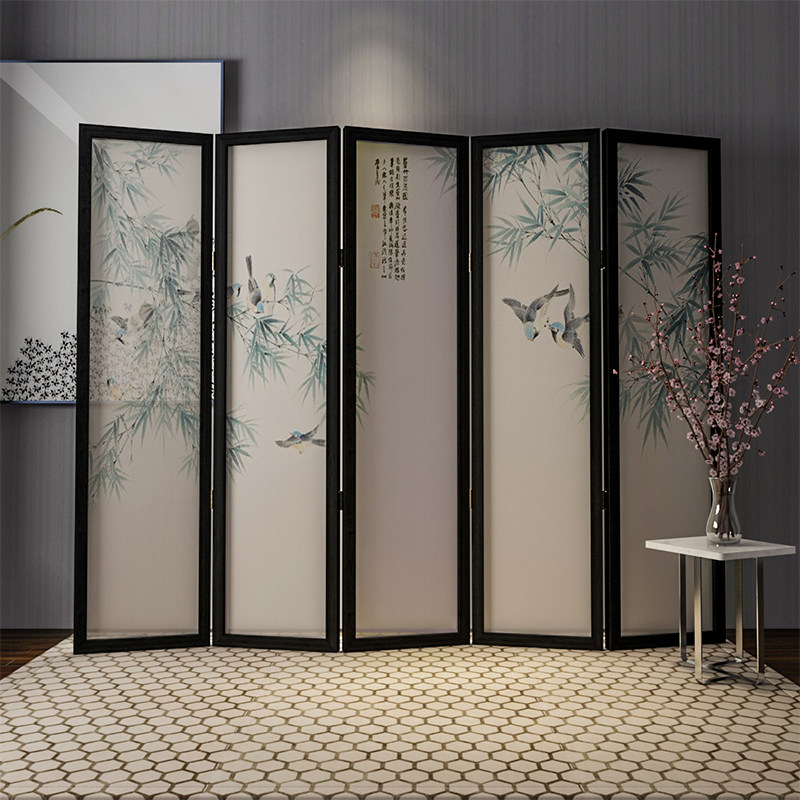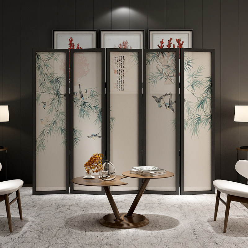 Chinese classical solid wood screen porch partition folding screen office teahouse hotel dining room screen mobile foldable