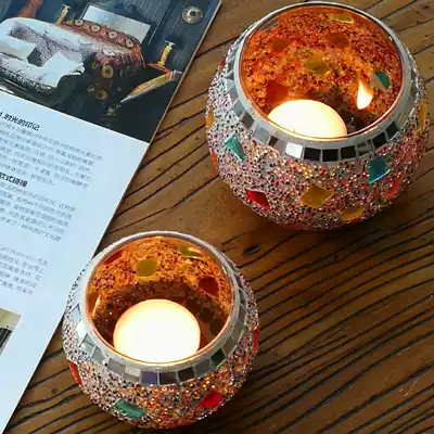 European romantic flag mosaic glass round ball candle holder candlelight dinner home decoration delivery electronic wax