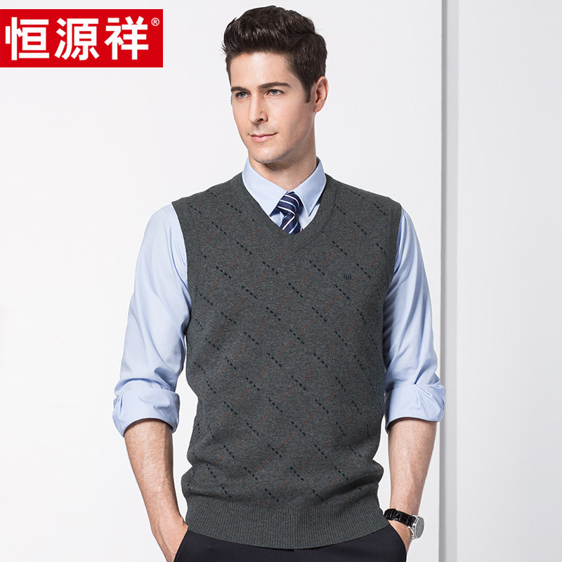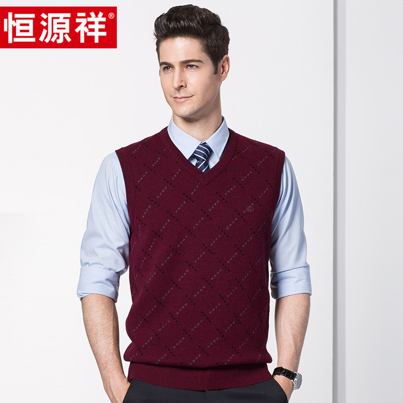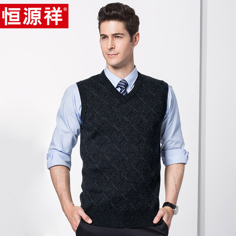 Hengyuan Xiang middle-aged wool vest male middle-aged father warm waistcoat knitted wool vest spring thickened vest