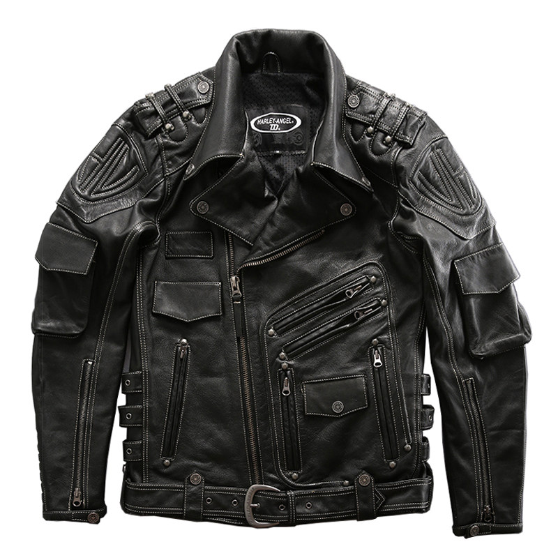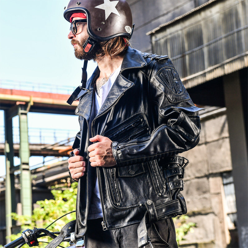 American Street Harere Heavy Machine Car With Leather Jacket Man Genuine Leather Leather Clothing Head Layer Bull Leather Diagonal Ferris Locomotive Clothes
