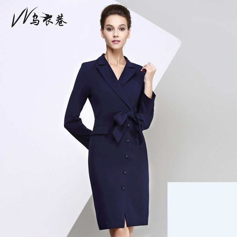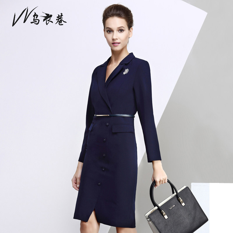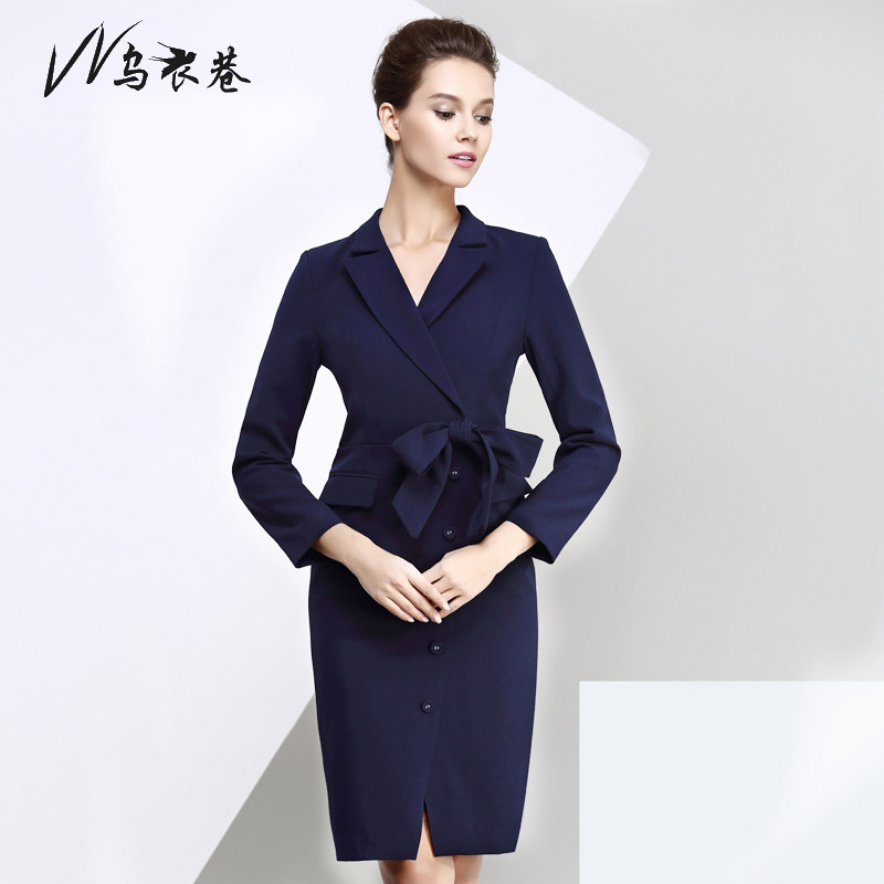 Clothing Alley Spring Autumn Professional Woman Skirt Commute European and American Name Temperament Western Suit Collar Foreign Dress Fashion Work Clothes