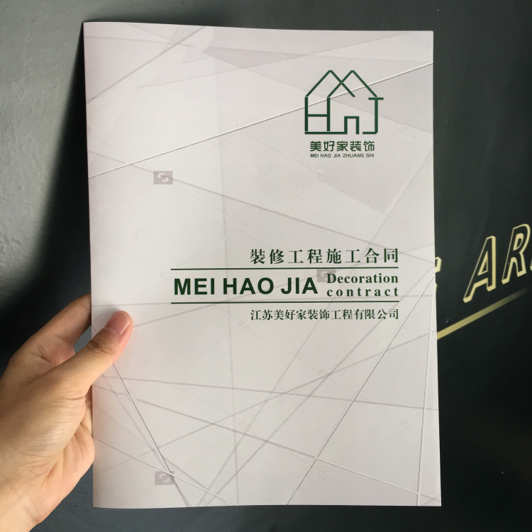 Custom printing color contract cover home decoration decoration contract construction manual printing production content binding