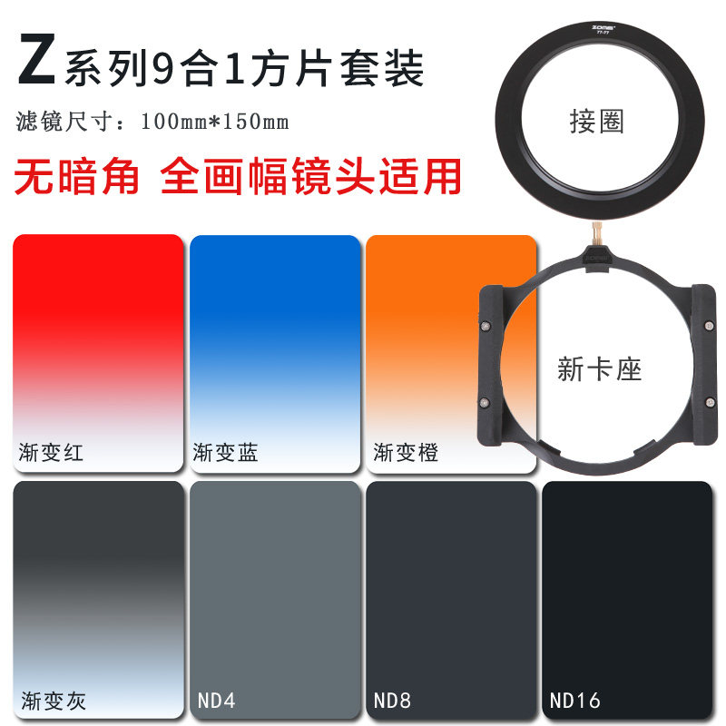 Zhuomei square filter 100*150mm gradient gray blue orange red medium gray dimming ND mirror Full gray density mirror insert mirror Metal bracket ring square piece set Scenery mirror Sky mirror Sunset mirror
