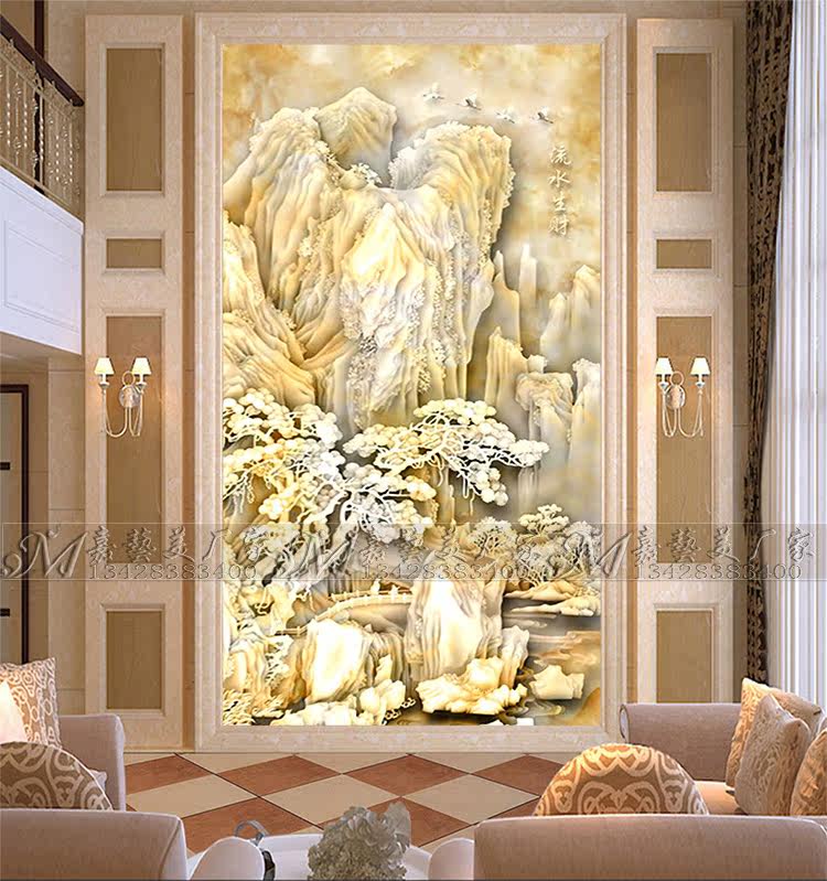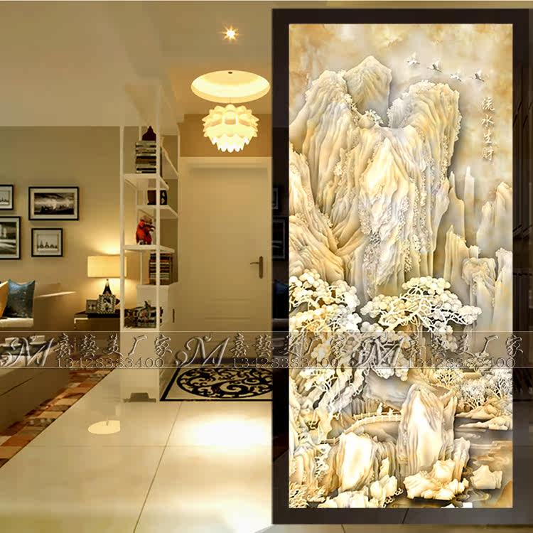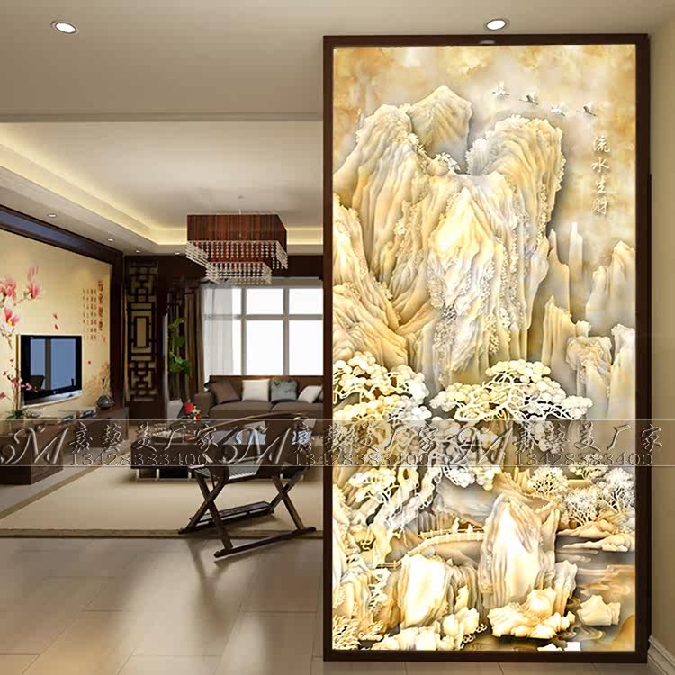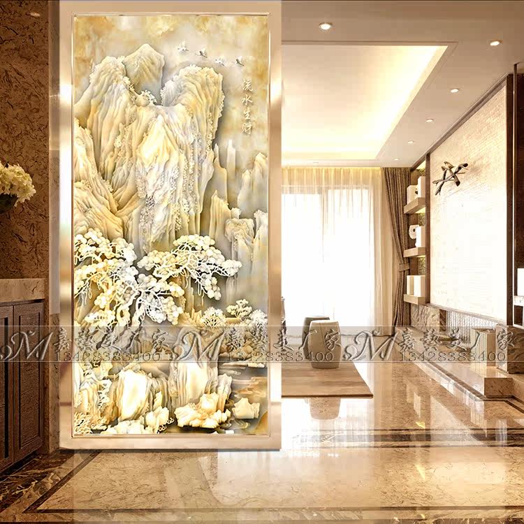 European custom art glass entrance living room screen partition Carved glass TV background wall 3D three-dimensional relief