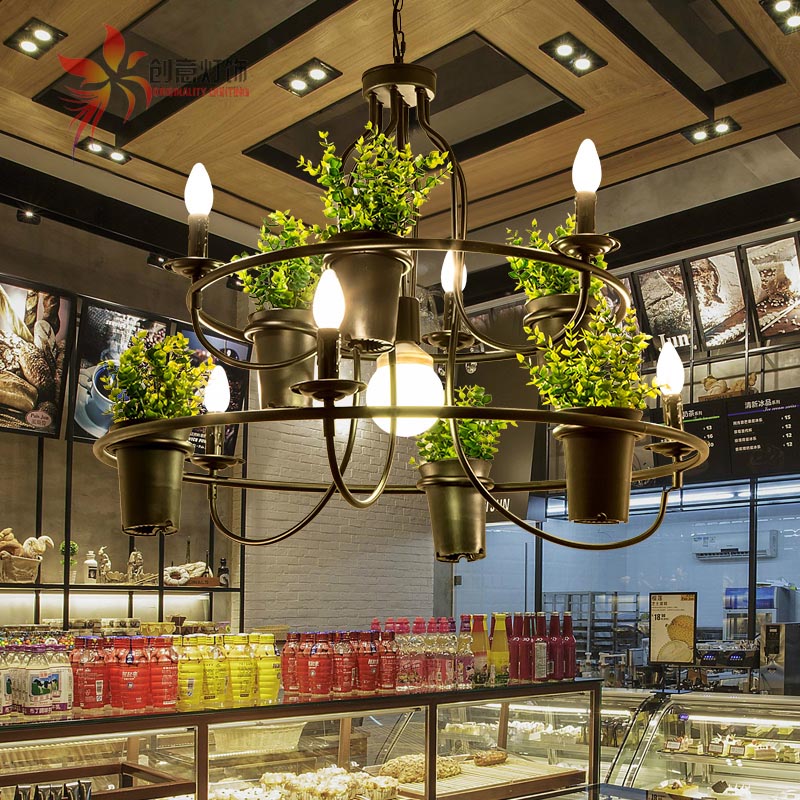 Loft creative personality bar plant art clothing store flower shop lamp net cafe American industrial wind hot pot restaurant chandelier
