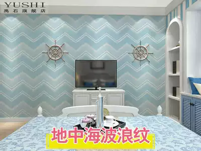 Self-adhesive wallpaper stripe living room bedroom Mediterranean College student dormitory table cabinet refurbished decoration waterproof wall stickers