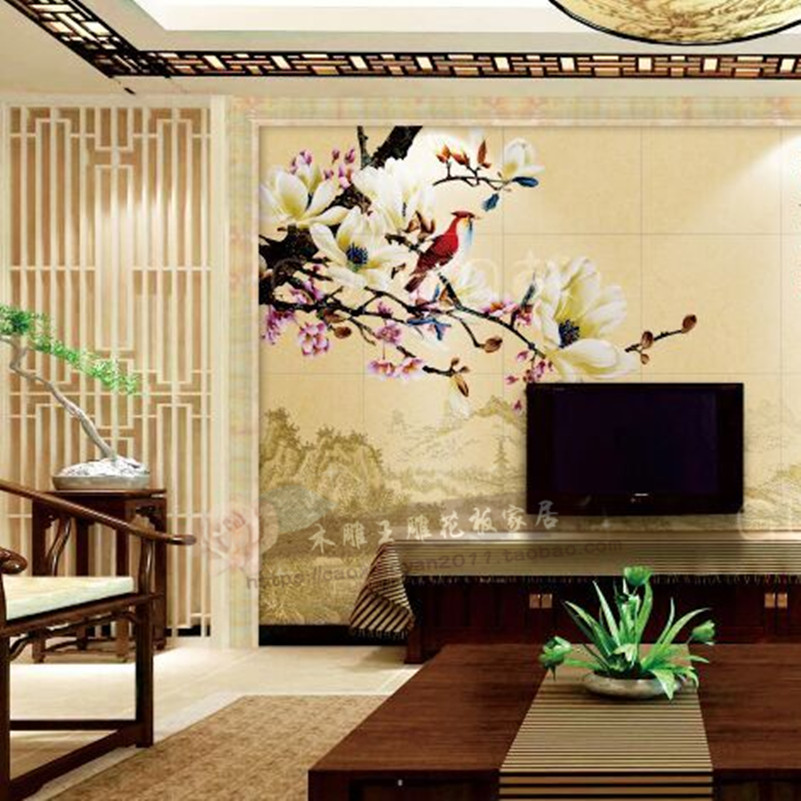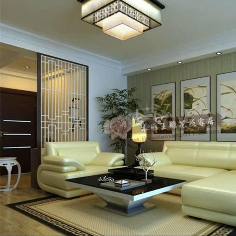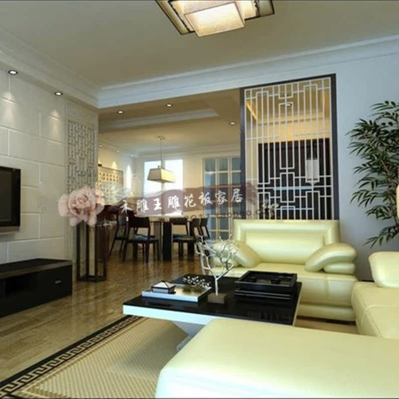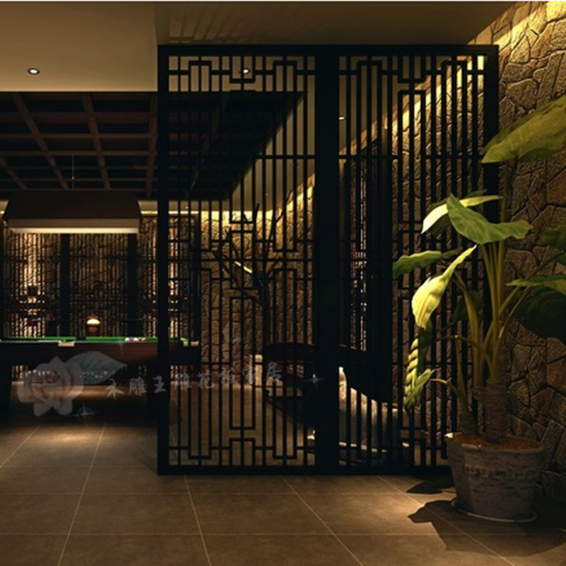 New Chinese vertical strip hollow porch entrance hall carved board partition density board flower grid background wall full board screen