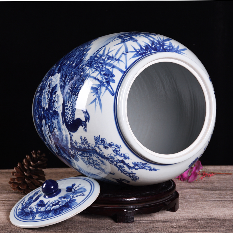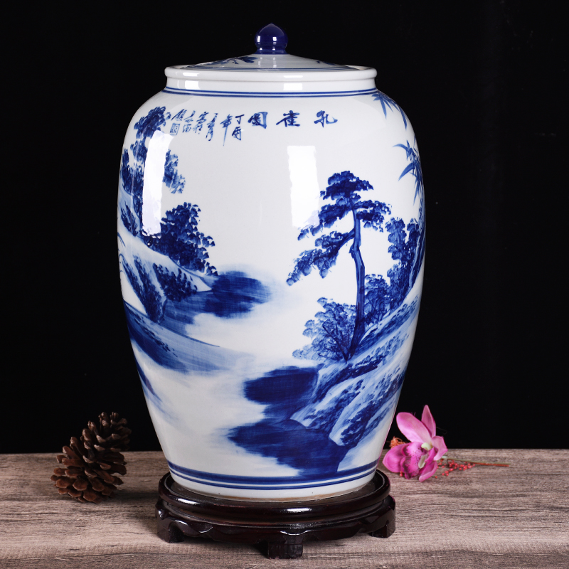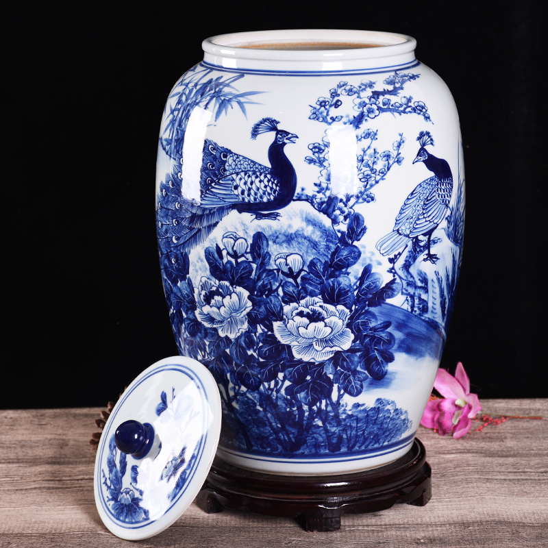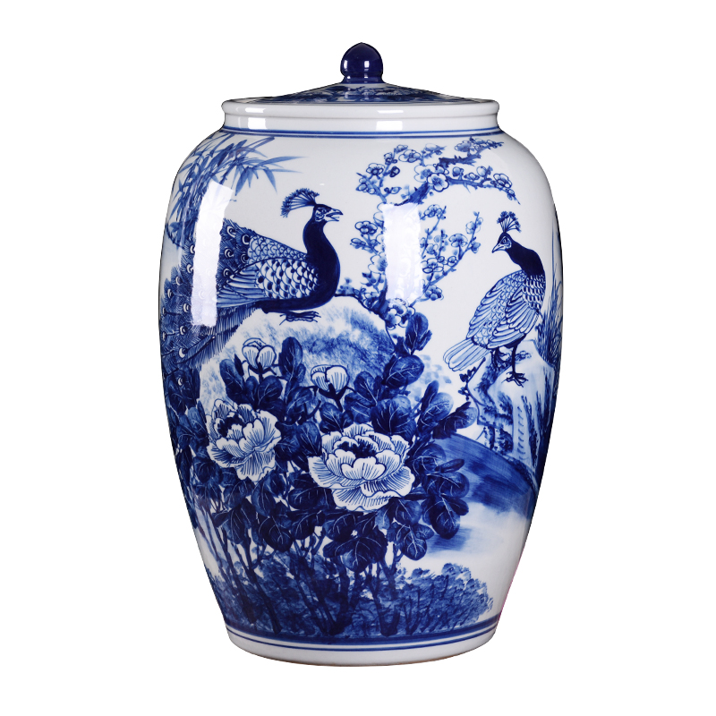 Jingdezhen ceramic master hand painted with lid 50 jack 100 meter cylinder damp wine cylinder domestic water cylinder living-room swing piece