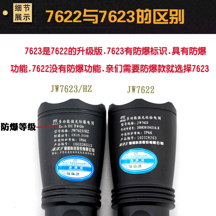 Marine king JW7622 JW7623 HZ 7620 multifunction glare inspection miniature explosion-proof flashlight charger