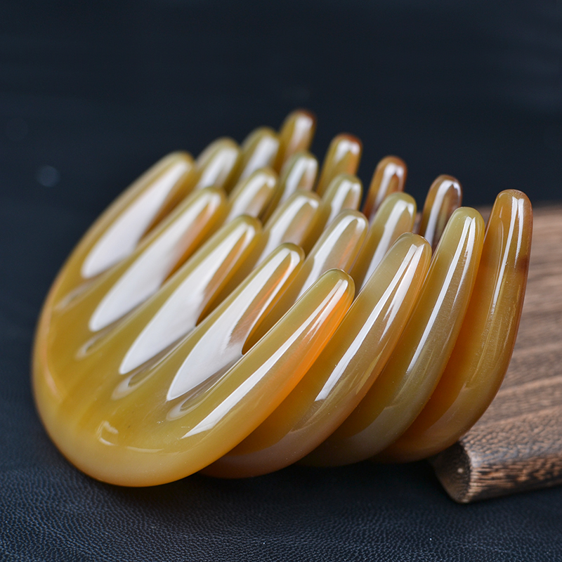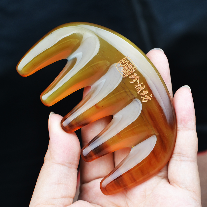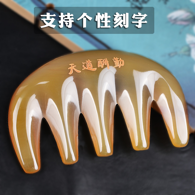 Natural Yak Horn Comb Head Meridians Comb Pure Male Lady Massage Large Teeth Lettering White Yellow Horn Comb