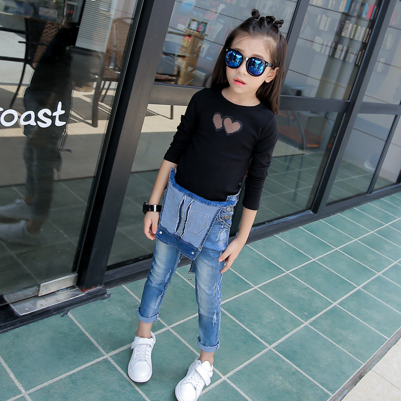 Spring and autumn girls' long-sleeved T-shirt tops pure cotton all-match thin section big children's bottoming shirt stickers slim Korean version black and white