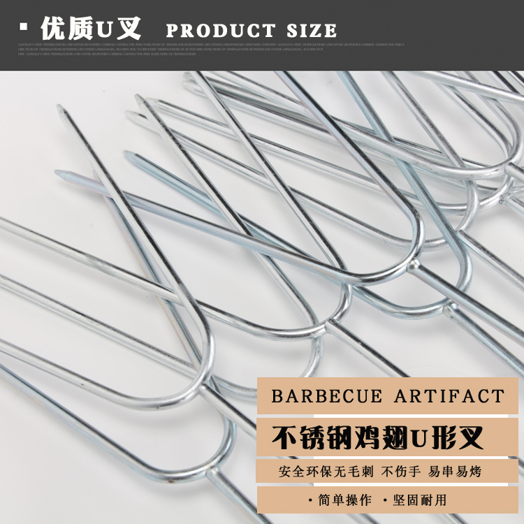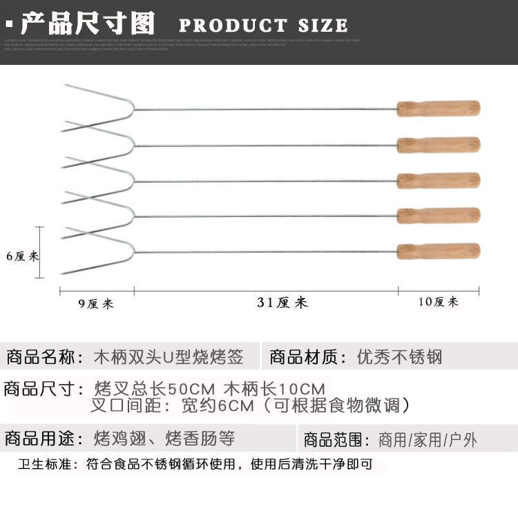 BBQ Tool BBQ Accessories Stainless steel U - shaped wooden fork Ham fork fork barbecue fork