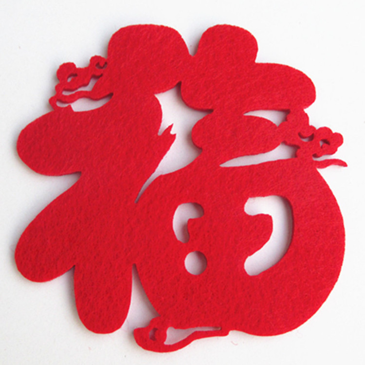 Spring Festival New Year goods door sticker Fu character sticker window flower hanging ornament lantern wall sticker New Year hanging flannel oversized size Fu character