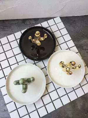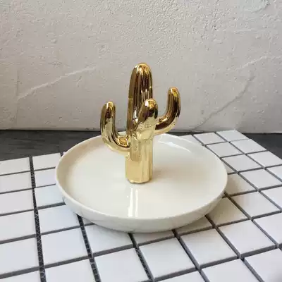 Export Nordic style golden green cactus jewelry ring tray desktop storage ornament porch decoration